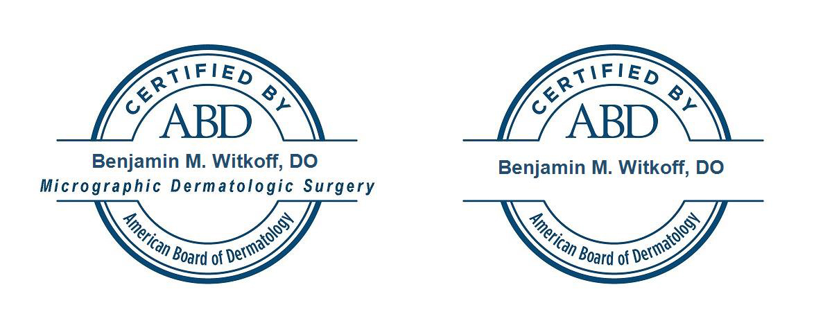 Dr. Benjamin Witkoff attended Ohio University Heritage College of Osteopathic Medicine. He completed his internship and dermatology residency at Larkin Community Hospital Palm Springs Campus, where he was Chief Dermatology Resident. Following residency, Dr. Witkoff completed a fellowship training in cosmetic dermatology and Mohs surgery.